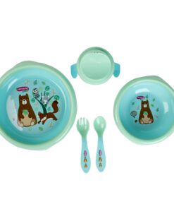Bộ 5 sản phẩm: chén, dĩa, muỗng, nĩa, cốc tập uống