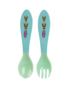 – Bộ đồ dùng ăn uống gồm nhiều dụng cụ hỗ trợ bé trong quá trình làm quen với việc tập ăn uống